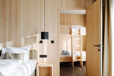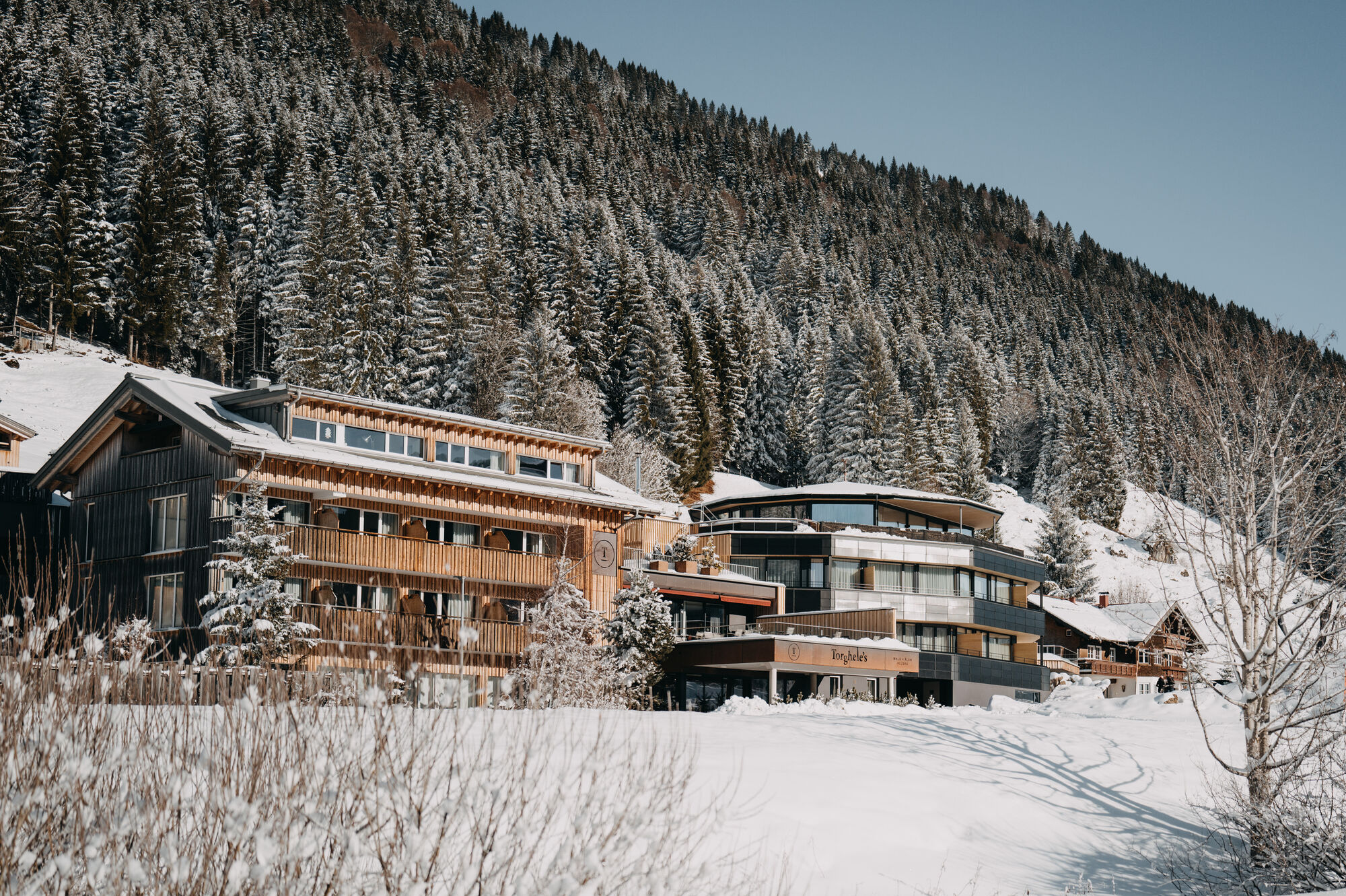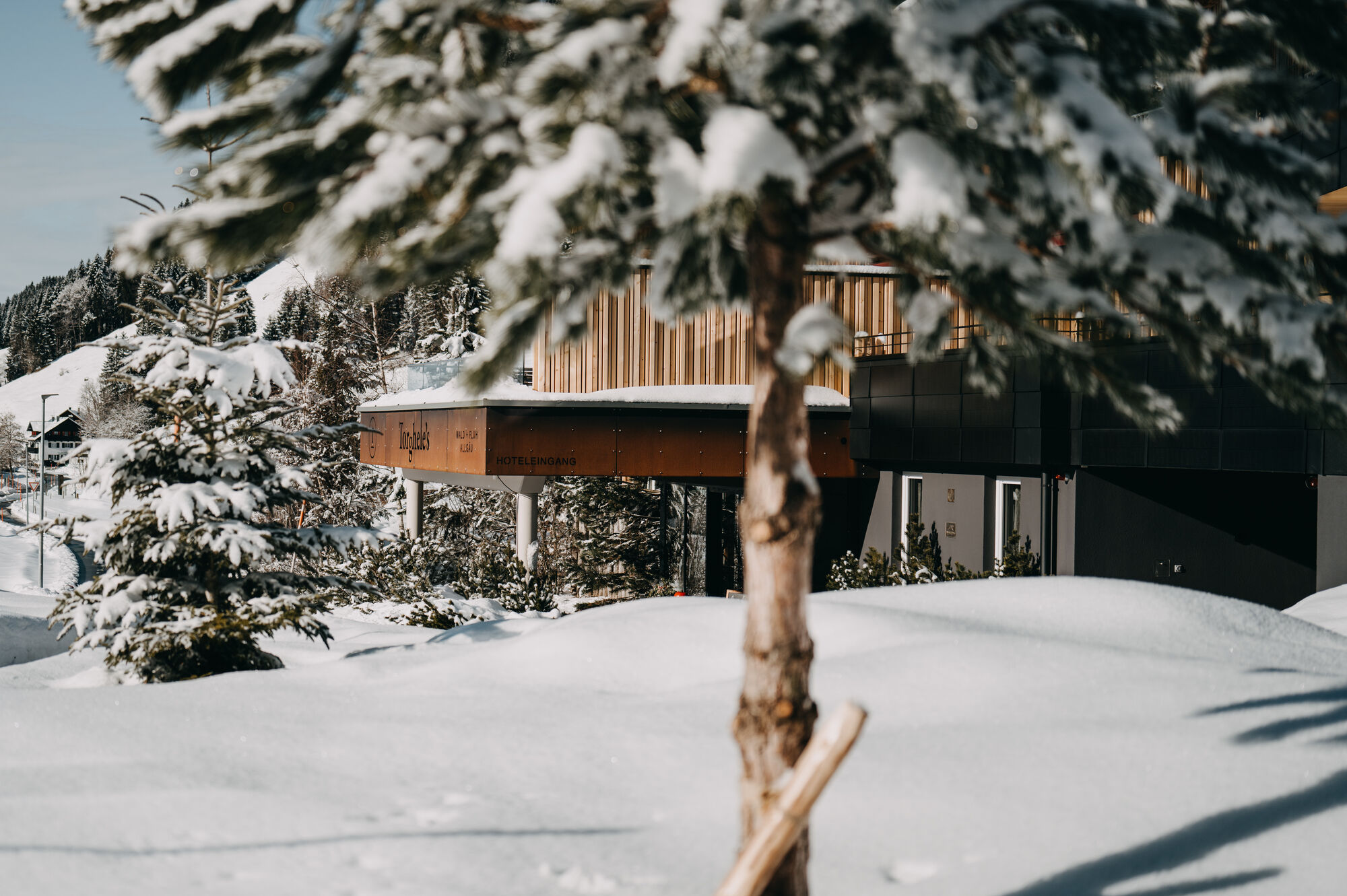 Embark on new adventures in Torghele’s Wald + Fluh in the Nagelfluhkette nature park and discover our new and much larger Torghele’Spa. Great views from our rooftop pool with sundeck await you here. In the adults-only spa and family spa with 6 new saunas, indoor relaxation pool, mountain spring bathing pond and various relaxation rooms, you can unwind. Our luxury board rounds off your stay at Torghele’s, because we bring the Allgäu in all its diversity to your plate and have made it our task to use regional products wherever possible. Surrounded by Wald + Fluh, we are the ideal starting point for activities and nature experiences in the Allgäu. Whether in the game reserve behind the house, in the relaxation forest or in the surrounding nature - with us in Torghele’s Wald + Fluh there is always something new to discover, namely where you are on holiday.
