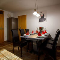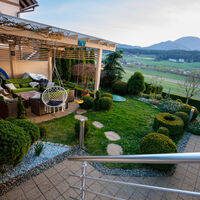 Pred vhodom v apartma je terasa z jedilno mizo in dvema ležalnikoma, kjer lahko gost uživa na svežem zraku z lepim razgledom na bližnje hribe in Uršljo goro.