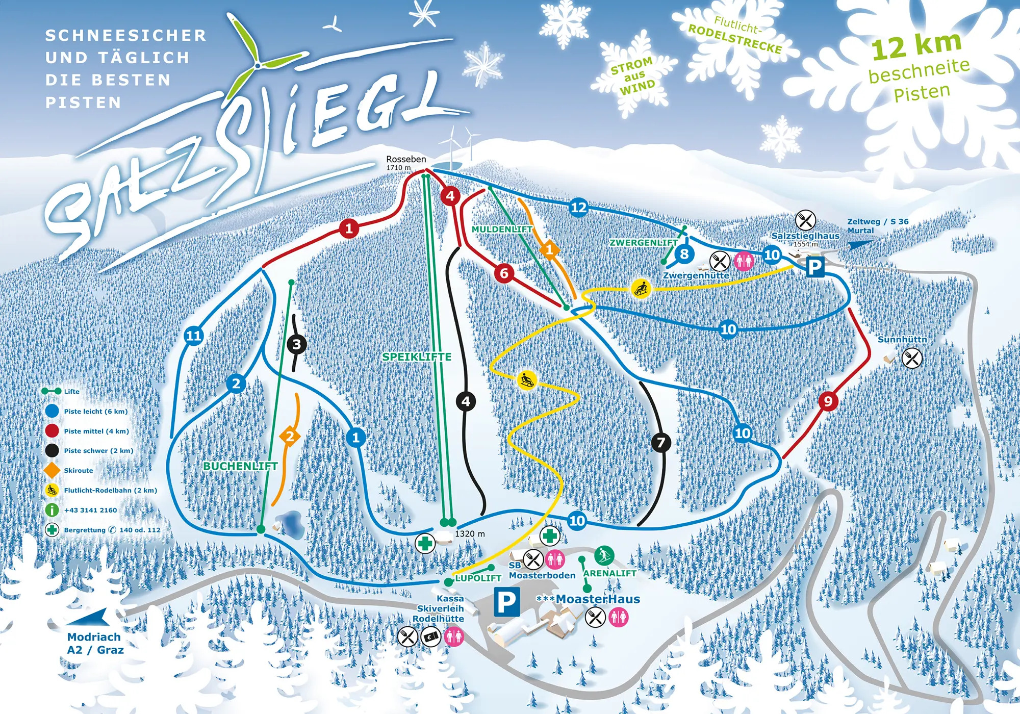 Smučišče je odprto vsak dan od 9.00 do 16.00. Le 50 minut iz Gradca lahko preživite športen dan na smučeh ali saneh.