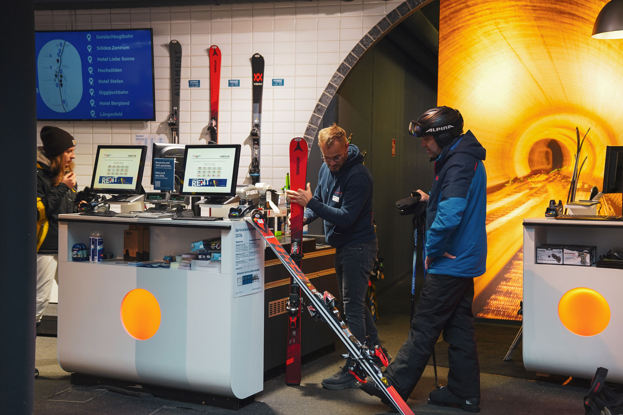 In unseren Intersport Rent-Filialen in Sölden und Hochsölden findest du top aktuelle Skier, Boards, Helme, Wintersportausrüstung und Fun-Geräte zum Ausleihen. Kinder bis 10 Jahre leihen ihre gesamte Ausrüstung bei Glanzer gratis! So macht Intersport Rent am meisten Spaß: