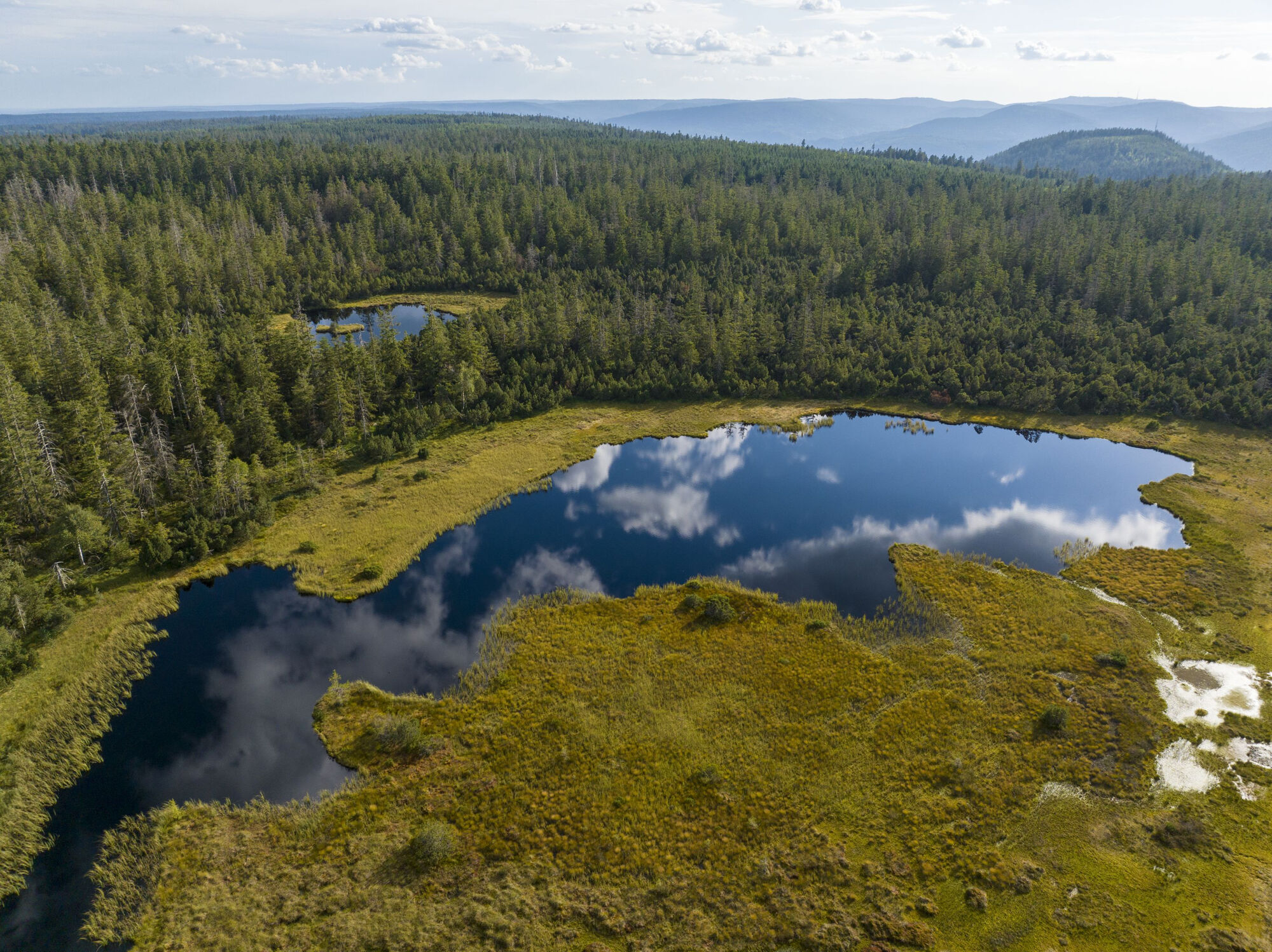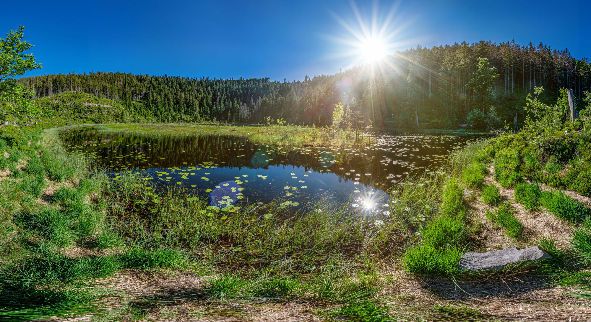 Die Landschaft des Hochmoor Kaltenbronn ist urwüchsig mit Karen und Blockhalden. Das auf über 900 Metern gelegene Hochmoor Kaltenbronn steht seit über 60 Jahren unter Naturschutz. Bei einem Zwischenstopp im Infozentrum Kaltenbronn, kannst du mehr über das Hochmoor erfahren.