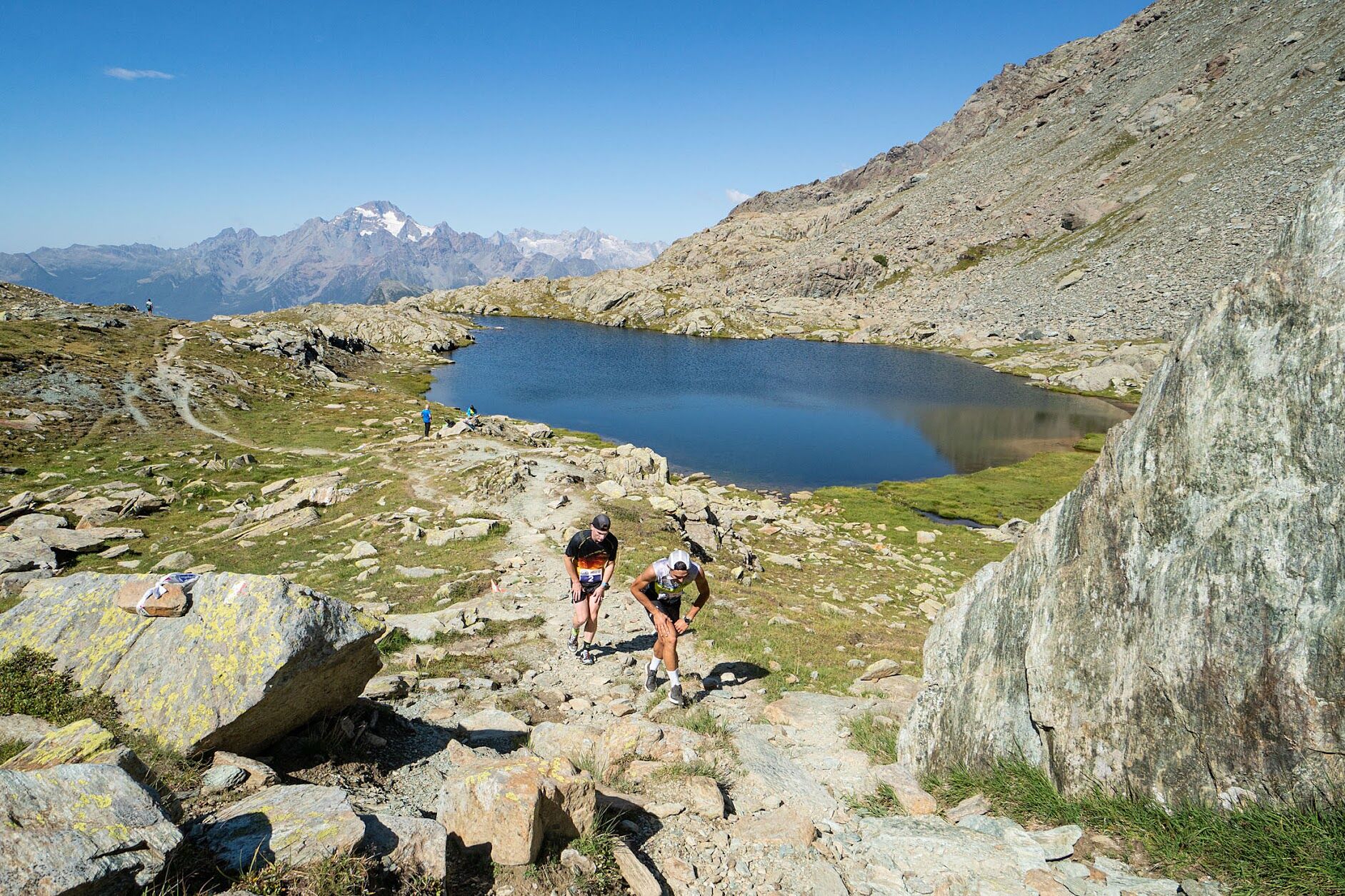 Die Strecke, auf der alle zwei Jahre das SkyRace Valmalenco–Valposchiavo stattfindet, verbindet zwei charaktervolle Alpengebiete. Der Start ist in Lanzada, das von Poschiavo aus mit öffentlichen Verkehrsmitteln erreichbar ist. Ein zunächst recht anspruchsvoller Anstieg führt über technische Pfade zu immer offeneren Landschaften. Nach etwa 15 km erreicht man den Staudamm von Campo Moro. Von hier aus bietet die Strecke aussergewöhnliche Ausblicke auf die Bernina-Gruppe und führt zum höchsten Punkt, dem Passo di Campagneda. Die Strecke führt weiter zum Passo Canciano, wo ein zunächst technischer Abstieg beginnt, der Aufmerksamkeit und gute Geländebefindung erfordert. Der letzte Teil ist zunehmend flüssiger: Eine Schotterstrasse, die durch die Brache von Selva führt, bringt Sie bis zur Piazza von Poschiavo. Eine abwechslungsreiche und panoramareiche Route zwischen Alpenwegen, Geröllfeldern und technischen Abschnitten, ideal für alle, die ein intensives und grenzüberschreitendes Trailrunning-Erlebnis suchen.