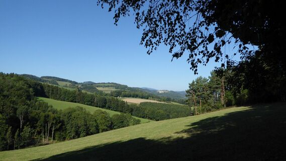 Der "Weg der Blicke" startet im Ortszentrum von Bad Schönau, führt durch den Kurpark, vorbei an den Tennisplätzen durch den Wald bis zum Bauernhof "Jägermeister".