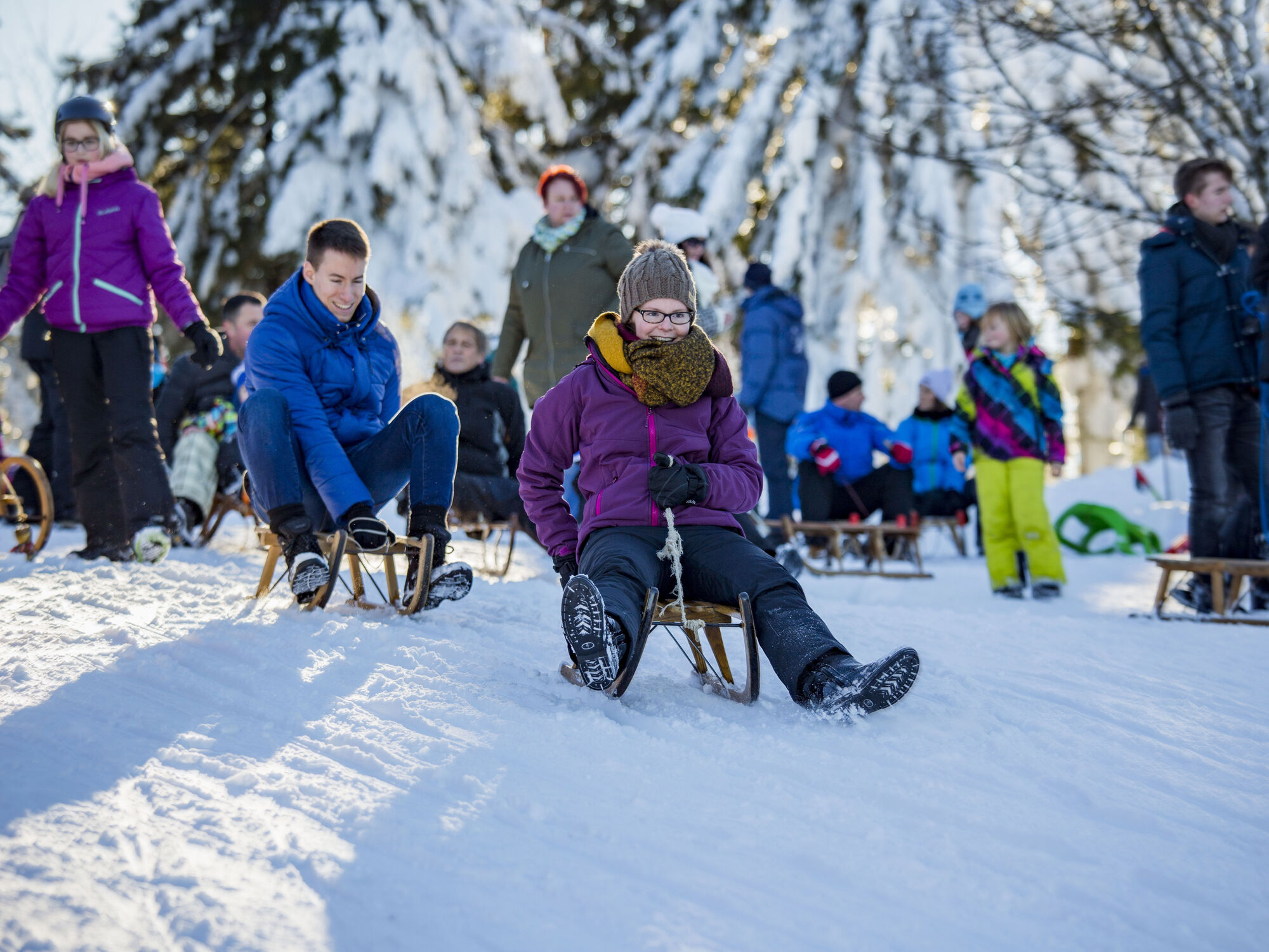 Die 1.500 m lange Rodelbahn, eine der längsten Rodelbahnen im Harz, erreichen Sie bequem mit der Bocksberg-Seilbahn.