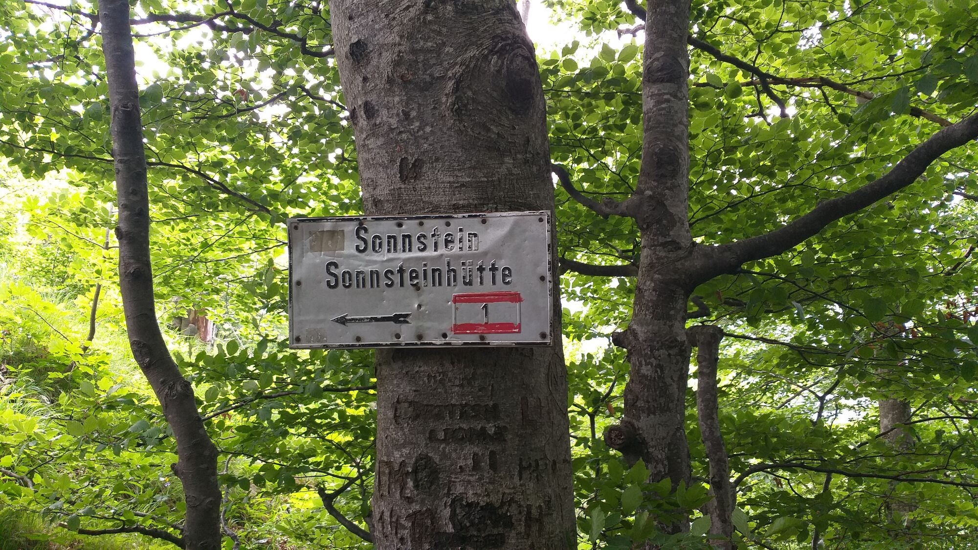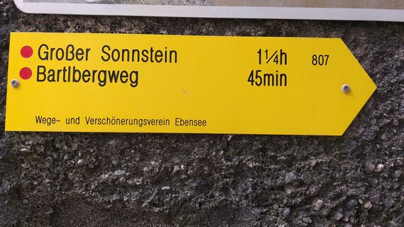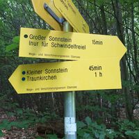 Vom Start bis zum Gipfelkreuz Großer Sonnstein 2,4km, 1h40min (angegeben am Wegweiser mit 1h15min)