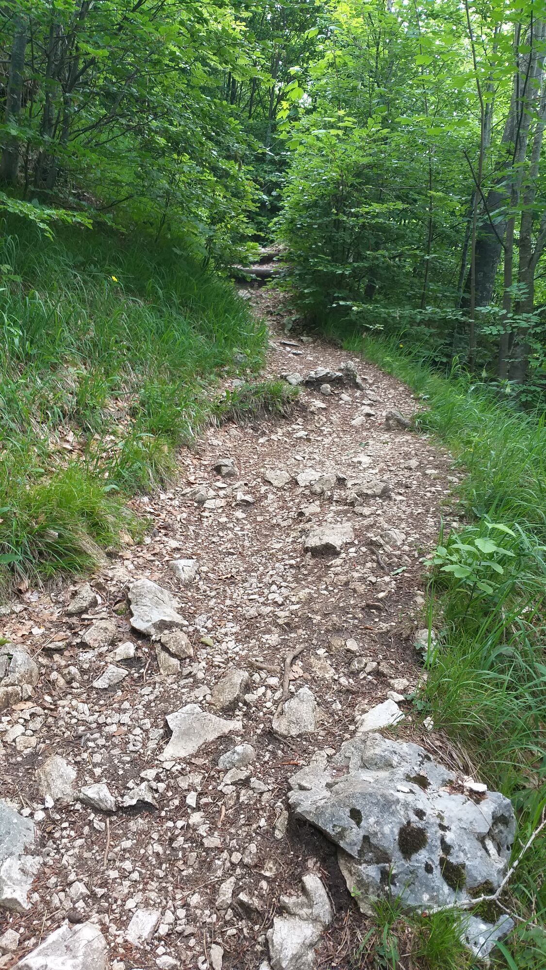 Am Anfang noch im Siedlungsgebiet, aber dann steigt der Weg an und führt in den Wald. 90% des Rundwegs befindet man sich im Wald/Schatten.