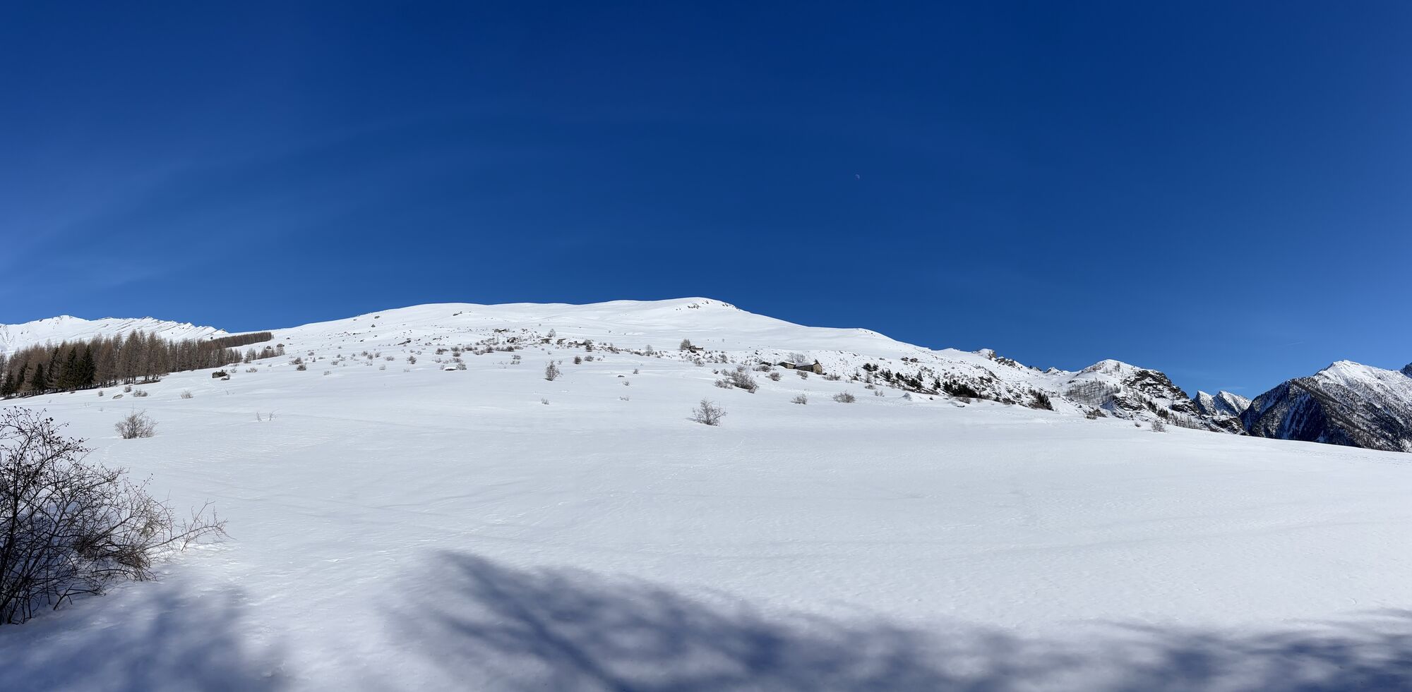 The itinerary ascends along the path of the previous stage that goes beyond some stone granges, evidence of ancient agricultural activities. At 1771 m of Gr. Chiotto Ligera you walk in wide pastures and the slope becomes steeper, among sparse larches, towards Colletto Serasin (2040 m). Here the view opens up to 360 ° and ranges from the middle to the upper valley, runs along the meadows of the Traversiera valley, up to the rocky peaks of the border. Go down first along the grassy cattle-track, then on agricultural track and finally on asphalt up to Lausetto hamlet where you turn right, already in view of the church of San Maurizio. After crossing the meadows behind the chapel, follow the long hillside path to reach the panoramic knoll of La Crocetta (1669 m) and then Chiappera.