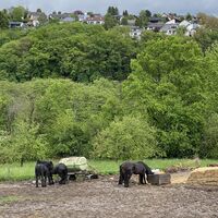 Wir folgen dem Weg durch den Wald, an Feldern vorbei mit schönem Weitblick. Teilweise schmale Pfade oder breitere Wege führen uns durch die Kastanienallee weiter Richtung Schloss Monrepos ( Museum und Café). Davor steht das lebensgroße Mammut. Dem Hauptweg folgend Richtung Neuwied Segendorf geht es rechts über einen schmalen Weg in den Wald und wir erreichen nach 7,6km wieder den Ausgangspunkt.