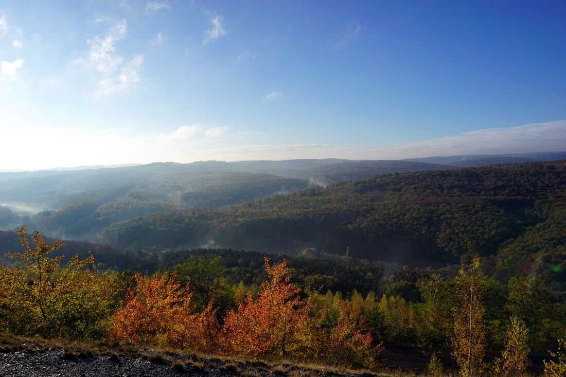 Vom Forsthaus Neuhaus aus steigt der Weg hinab über eine Wiese und vorbei am alten Waschbrunnen in das Steinbachtal. Die Route biegt rechts ab und folgt dem Tal abseits der Hauptwege über die bewaldeten Halden der einstigen Steinbachschächte. Auf diesem Abschnitt kann man Totholz und auch unberührte Weiheranlagen mit Wildblumen entdecken.