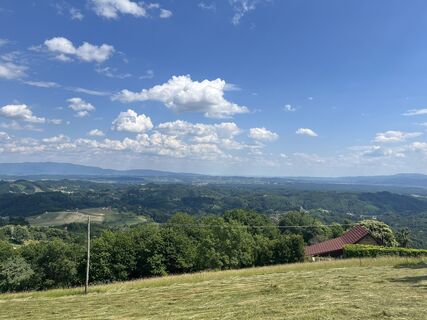 Langs een andere weg met mooie panorama's gaan we dan terug naar de Grad (kasteel) van Pisece. je kan het niet bezoeken maar de tuin is vrij toegankelijk. Onderweg is er nog een afslag mogelijk maar dit pad bleek volledig dichtgegroeid, dus op onze stappen terug gekeerd en langs andere weg.