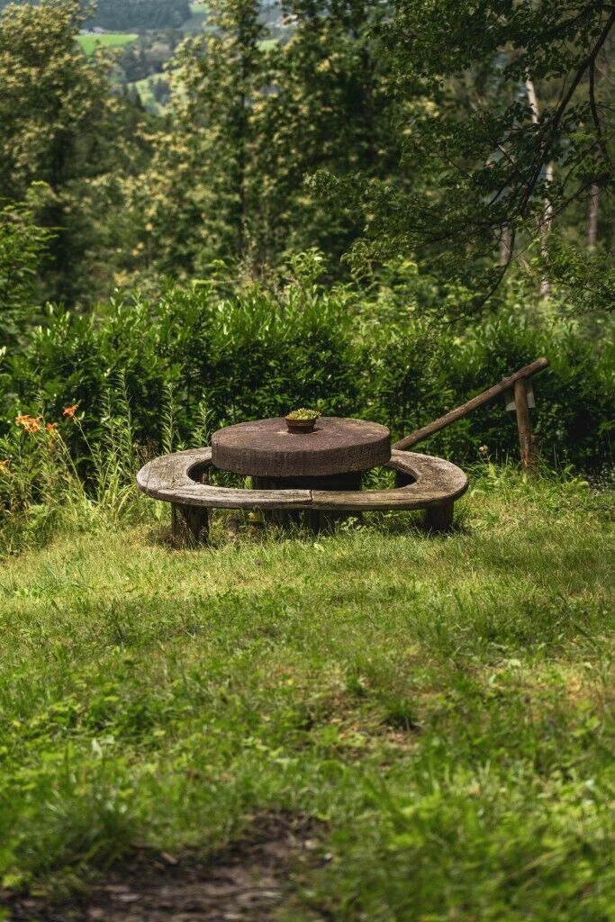 Sie starten am Kirchplatz vorbei am Pfarrhof, der „Orangen Schilcherglasmarkierung“ folgend, über die Brücke, wo Sie auf die Saggau mit ihrer Fischleiter blicken. Nach dem Überqueren der Bundesstraße links zur Mittelschule, wo Sie noch das Verwaltungsgebäude des ehemaligen Stahlwerks erkennen können, in dem um 1870 über 600 Leute beschäftigt waren. Nun wandern Sie am Mariazellerweg (Nr. 506) zum herrschaftlichen Hof Aichberger, von dem Sie einen herrlichen Blick auf Eibiswald haben. Über Wald und Wiesenwegen zum Hof Hohl mit Hochlandrindern und weiter zum Gasthof Safran-Filatsch. Dann links abbiegen der Straße entlang zur Wein- & Genusswelt Garber mit seinem Aussichtsturm, von dem Sie herrlich ins Land blicken. Angekommen im Ferdinanndstal gibt es eine Infotafel über die Geschichte von Glas in Eibiswald. Nach einer kurzen Überquerung der Bundesstraße geht es links hoch zum Jöbstl Stammhaus vlg. Stari. Verkosten Sie sich durch hauseigene Weine und selbstgebrautem Bier. Über die idyllische Teichanlage geht es weiter zum Aiblerkogel. Danach geht’s bequem durch Weingärten und Wälder bergab. Entlang des Weges kommen Sie bei der Aibler Ölpresse vorbei, wo Sie die Möglichkeit haben, die Presse zu besichtigen, Kernöl und Kerne zu verkosten und sich ein „Souvenir“ mitzunehmen. Von der Presse wandern Sie gemütlich über Hügel, Wiesen und Wälder entlang des Eibiswalder Rundweges R1, wo Sie nach ca. 4 km wieder beim Ausgangspunkt in Eibiswald angekommen sind. Sie haben auch die Möglichkeit den Weg über eine Variante abzukürzen.