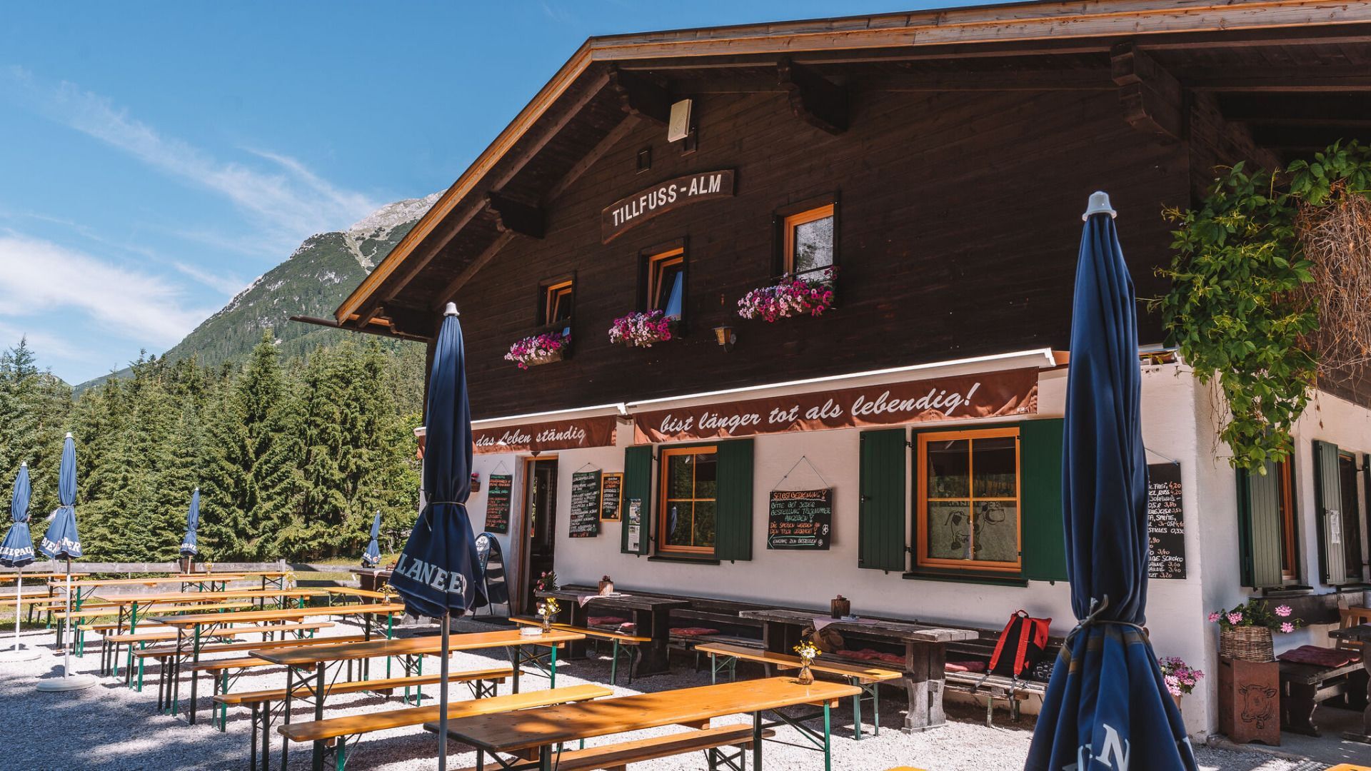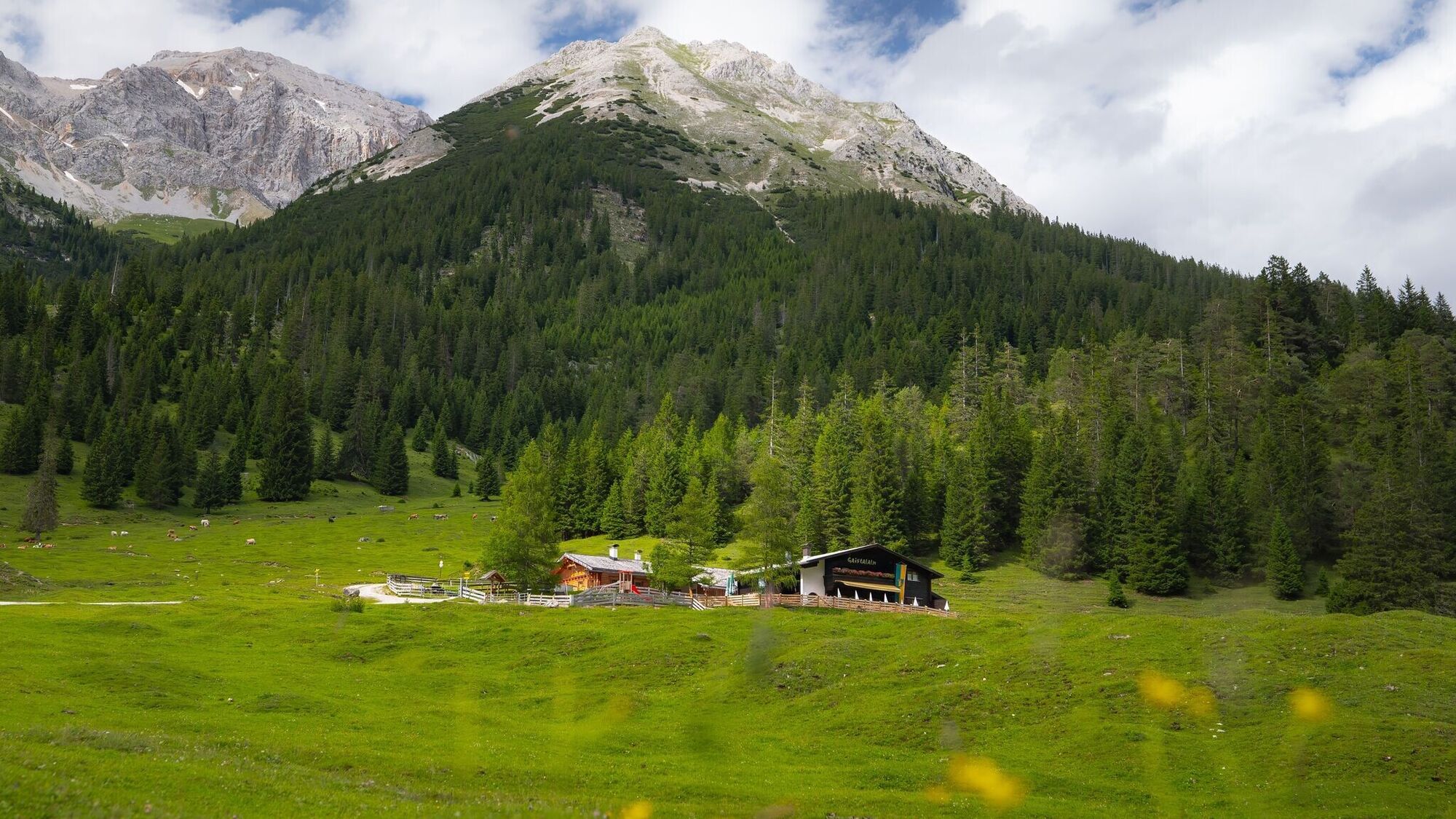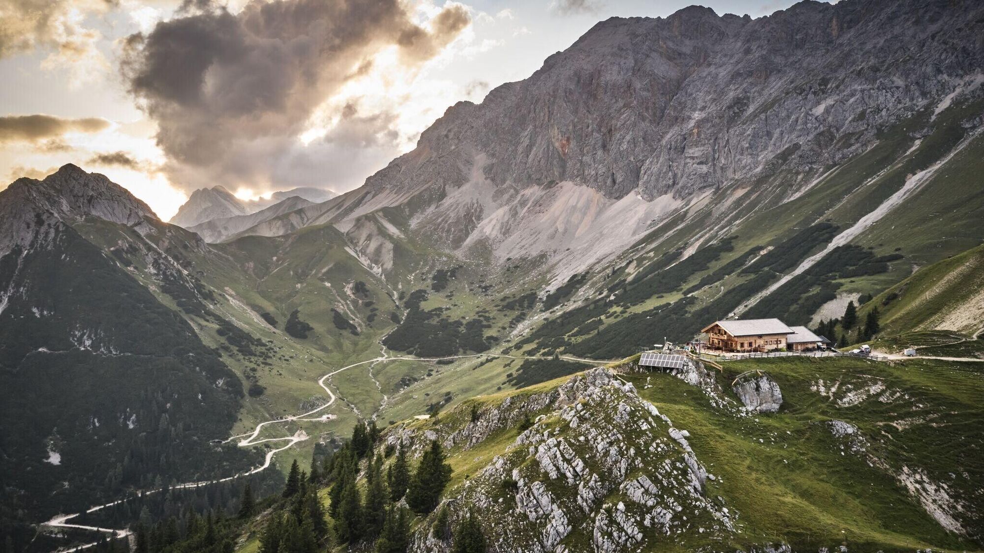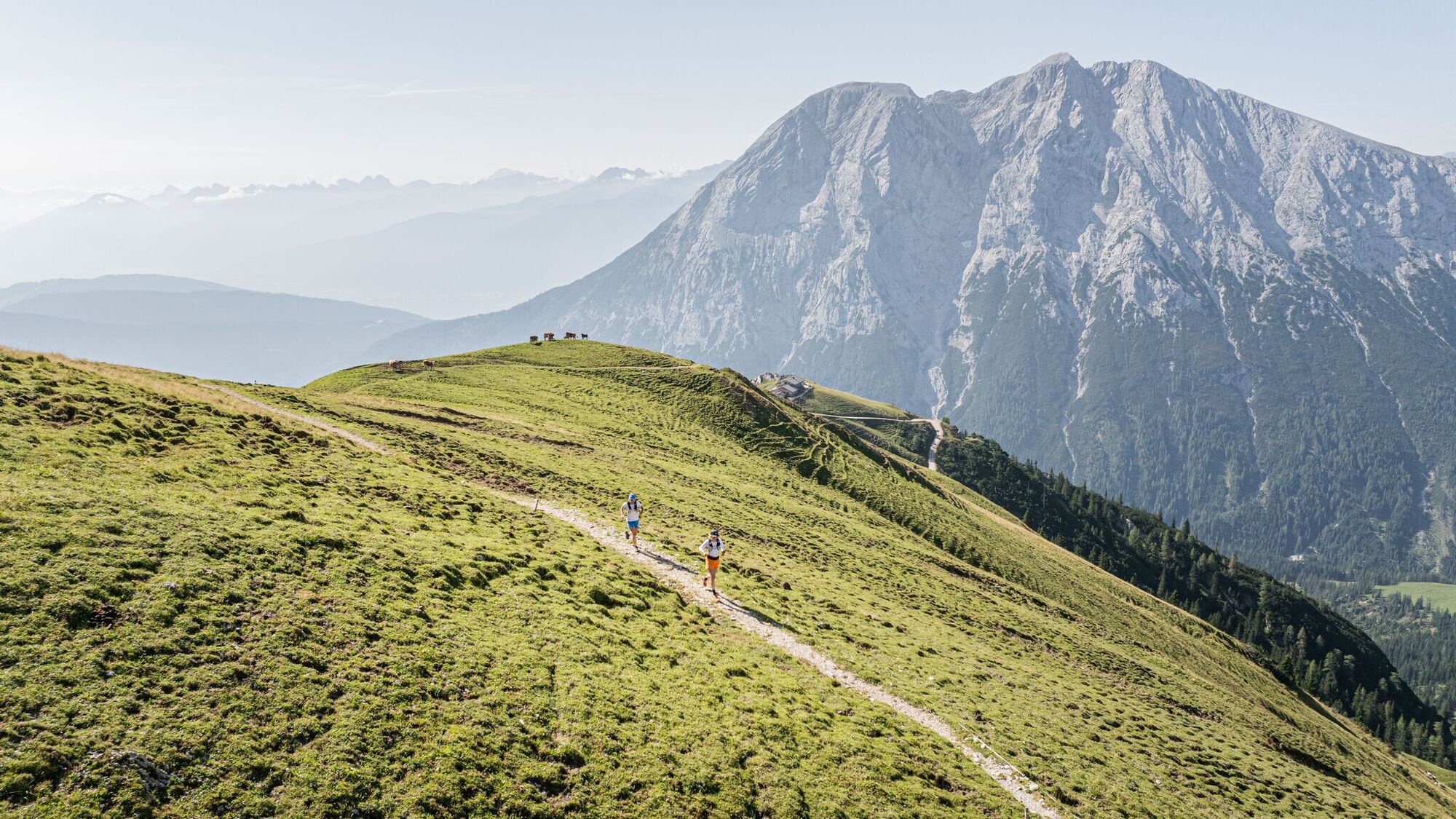 Eine Abzweigung ermöglicht einen Abstecher zur Rotmoosalm, die sich perfekt für eine Einkehr eignet. Weiter geht es jedoch am Südwandsteig bis zur Wangalm oder Wettersteinhütte, wo erneut herrliche Ausblicke und gut laufbare Trails warten. Nach einer Jause auf einer der Hütten führt der Abstieg über den Wackeren Steig, einen technisch anspruchsvollen Trail, der volle Konzentration erfordert. Wer es gemütlicher ausklingen lassen möchte, kann stattdessen den Forstweg für den Rückweg ins Tal wählen.