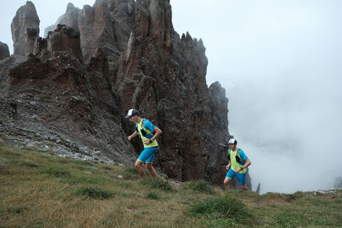 Im Schotter nun hinauf zum Sattel. Südseitig erblickt man die vielen kleinen Felspyramiden der "Geisterburg", eine Bezeichnung, die wohl sehr mit dem Aussehen der vielen Türmchen zu tun hat. Vom Sattel quert der Weg in die Ostseite, überschreitet einige Felsrippen und endet dann am Beginn einer Rinne. Direkt unter einem Steilaufschwung biegt der Anstieg nach links ab und führt zu einer Seilversicherung. Diese Seilversicherung zieht sich, mit einigen kurzen Unterbrechungen, hinauf bis zum Gipfel der Vorderen Plattein. Für dieses Wegstück benötigen Sie Trittsicherheit und klettertechnische Fähigkeiten.