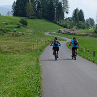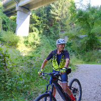 Parcheggio all’ombra di fianco alla chiesa di Strigno 460m. Succo di frutta al Moomba Cafè di Strigno 506m. Salita su stradina asfaltata lungo il torrente Chieppena, prima a sinistra, poi a destra, poi in località Castrozze 546m si sale a sinistra nella valletta del rio Lusùmina, quindi a destra sulla dorsale prativa del Pianello fino alla chiesetta di San Biagio 817m; un breve tratto asfaltato sui prati del Brogio, poi si affianca la statale percorrendo la vecchia strada scendendo al ponte ciclabile sul Chieppena con stradina cementata (ricostruito dopo la disastrosa alluvione del 1966 che porto via tutti i ponti fino alla confluenza col Brenta). Raggiunta la frazione di Pradellano 856 si piega a destra seguendo la comoda stradina asfaltata che dopo 2 tornanti traversa l’infinito costone della Ravacena (stupendi esemplari di Gentiana asclepiadea), altri 4 tornanti e andiamo dritti al belvedere del Monte Lefre 1308m dal quale di ammira tutta al piana di Borgo. Scendiamo al Rifugio omonimo 1300m per un bel panino, poi risaliamo su sterrata verso prati di Campigolo fino la colma 1410m, da dove si scende nella bella valletta che ospita Malga Campigolo di Valle. La sterrata è discreta con 13 tornanti stretti a destra delle rocce del Sasso Rosso seguiti da un lungo traverso fin sopra Cinte Tesino 867m; raggiunta la strada asfaltata proviamo a risalire fino ai Prati di Monte Mezza 1110 ed al parcheggio 1200m; poi sterrata con tratti ghiaiosi fino al Sentiero Monte Mezza 1404m. Noi proseguiamo sulla sterrata ma la strada termina; nessuno ha voglia di affrontare il sentiero di salita al Monte Mezza 1679m e decidiamo di tornare. Scendiamo per la strada di salita fino a Cinte Tesino 850m e Pieve Tesino 860m, risaliamo al passetto de La Forcella 910m, dal quale scendiamo su una sterrata che passa a sinistra del Lago Pradellan, raggiunge Pradellano e la ciclabile di salita con la quale torniamo al parcheggio di Strigno. Caffè scekerato per tutti al Bar Centrale accanto alla chiesa.