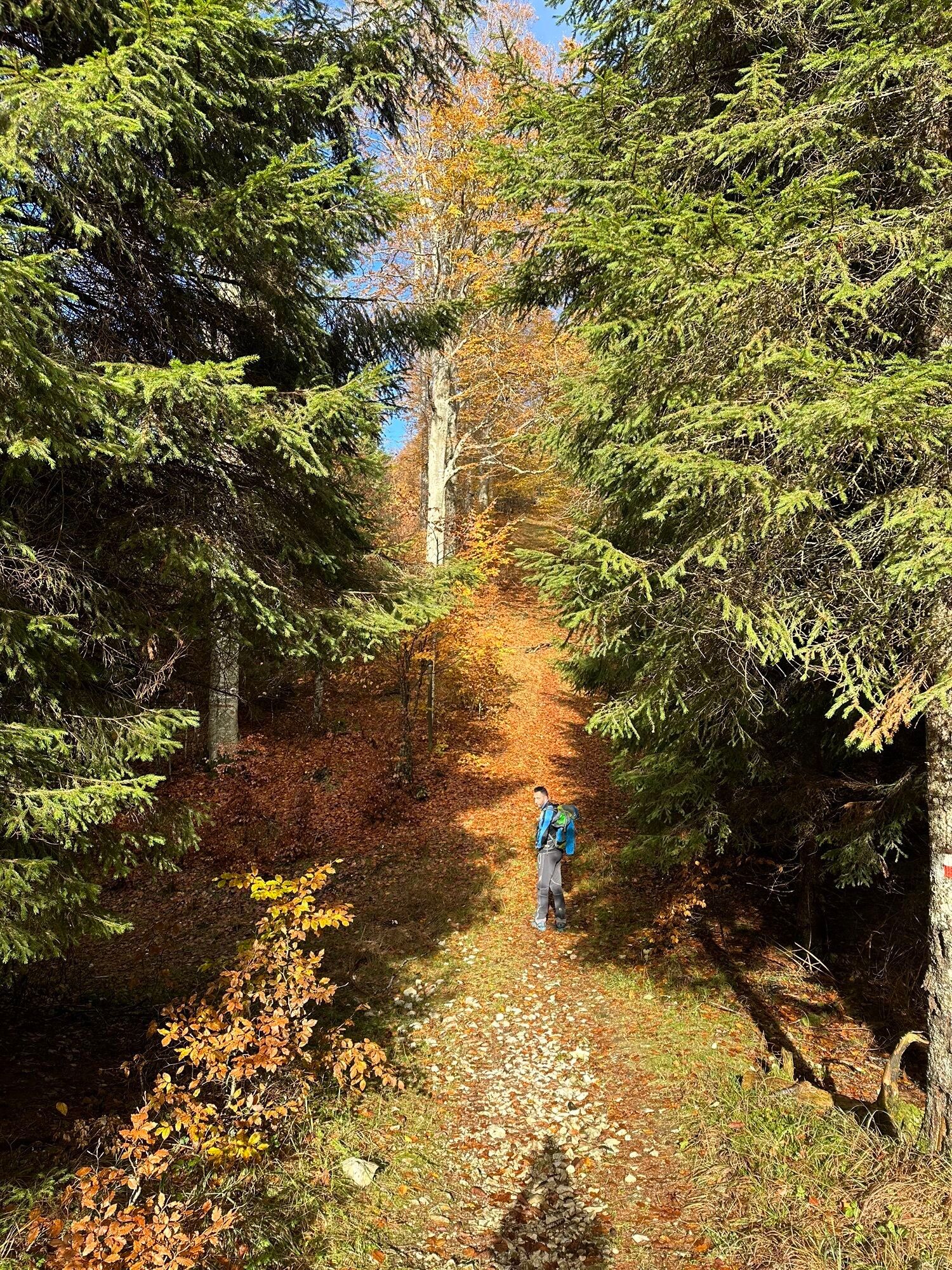In un piccolo tratto in discesa è un po’ difficile individuare il sentiero, ma seguendo la traccia si vedono i segni sugli alberi e lo si riprende subito dopo.